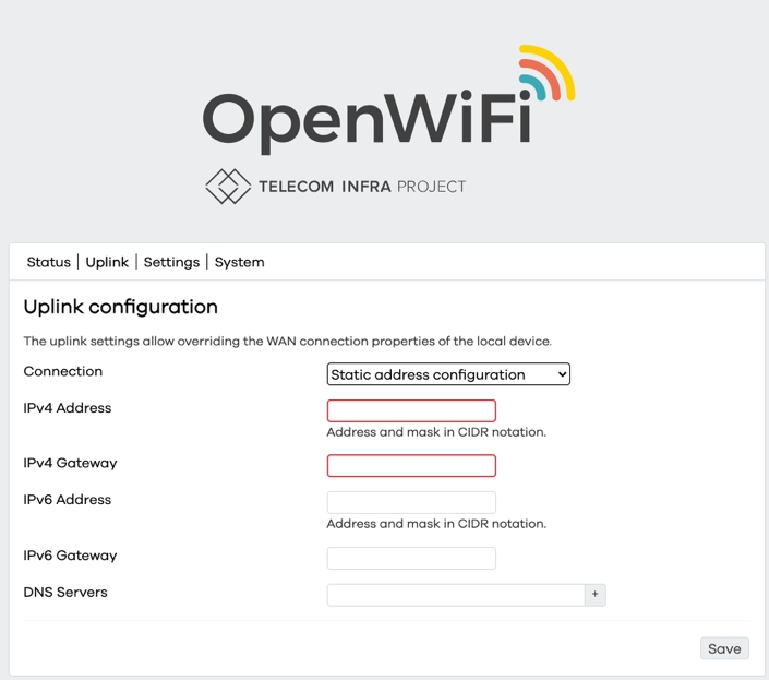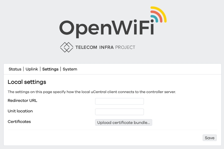 If under rare circumstances it is not possible to discover the OpenWiFi cloud associated with the device or there is a need to replace device certificates, this may be configured in Settings.