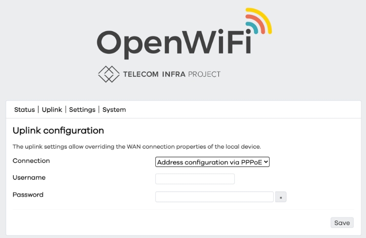 If connection uses Point to Point over Ethernet (PPPoE) username and password credentials, enter those values and save.