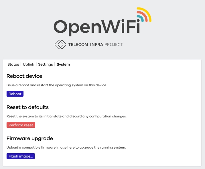 It is possible to reset the device to defaults, or locally update firmware using the commands available from System.