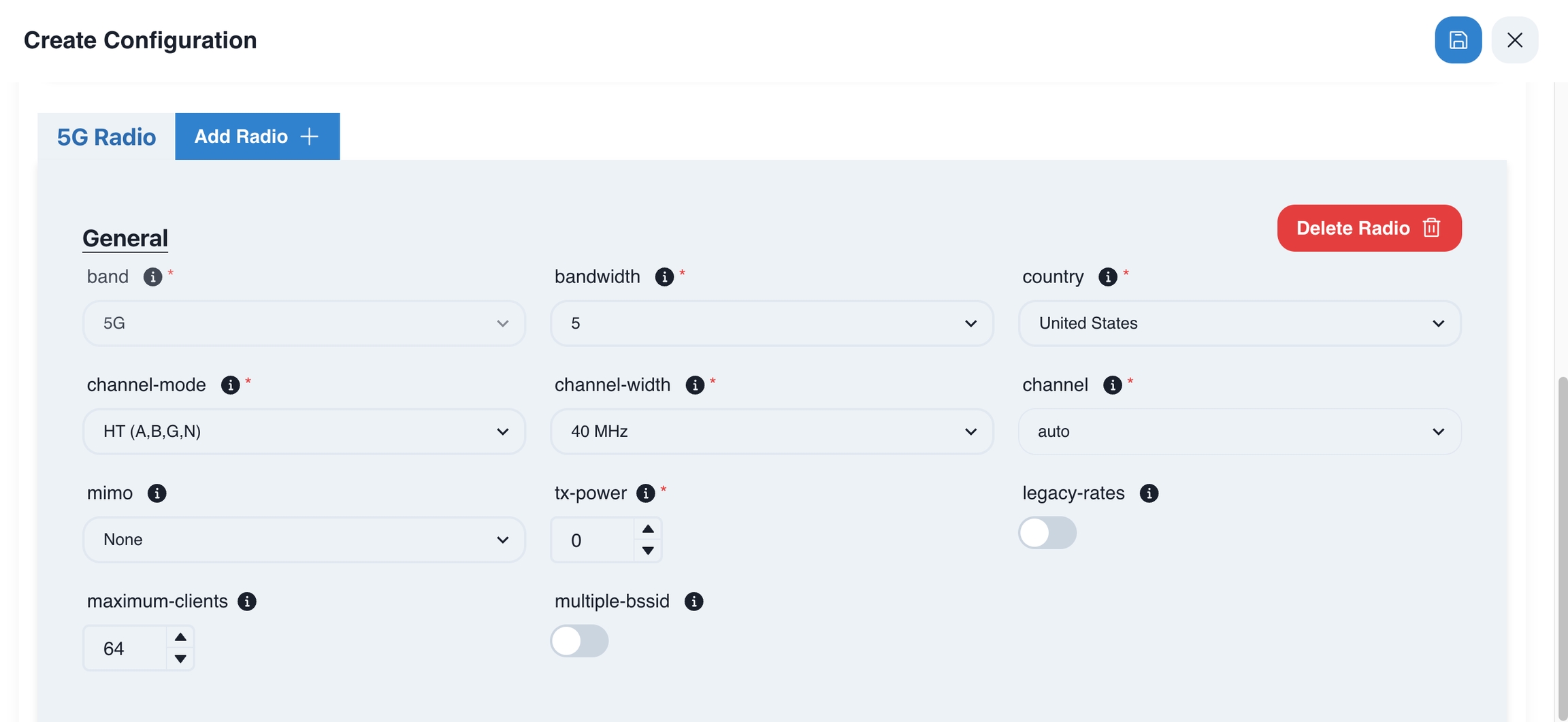 When complete, Save the "Top Level Wi-Fi 6 2x2" configuration for the device types chosen that align to such a radio mode.