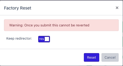 It is possible to revert a device to initial out of box state from the OpenWiFi SDK. Sending a Factory Reset will remove all configuration on the device and optionally reset the discovered cloud stored as the 'Redirector' in the device configuration.