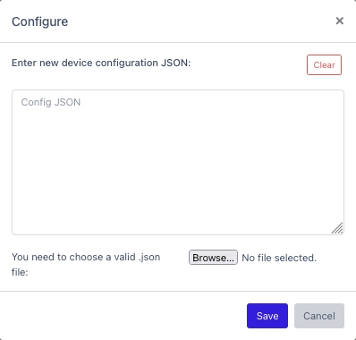 Prior to the introduction of OpenWiFi 2.0 Provisioning Service, device configuration is done through creation of the JSON provisioning file and either loading that file or applying its contents using the dialog presented via Configure. The same options exist when using the API directly.