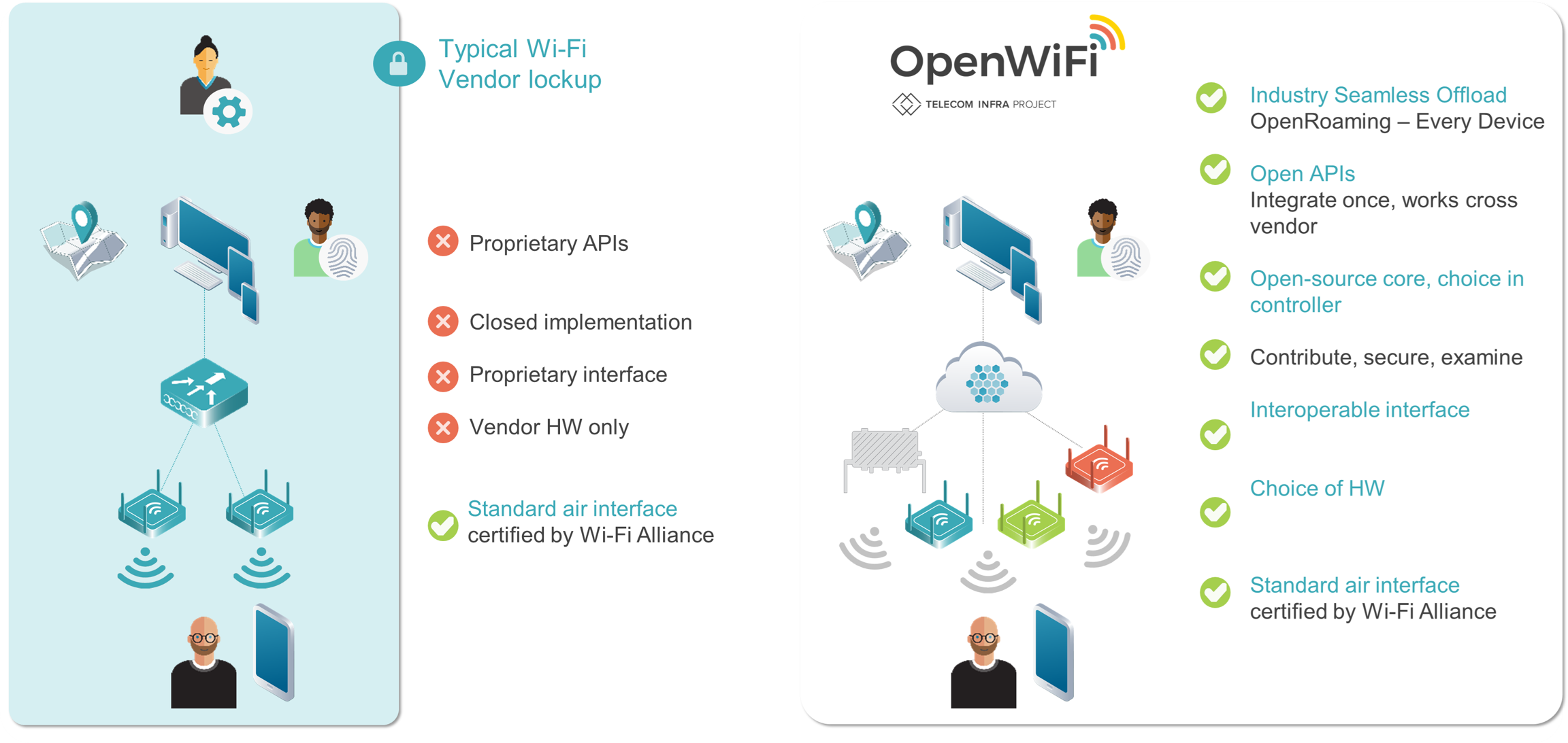 TIP OpenWiFi architecture works specifically to enable choice in device and cloud. Multiple operators have indicated legacy lock in models present with enterprise WLAN systems are lowering deployment velocity, limiting innovation and introducing artificial barriers to new market use cases.