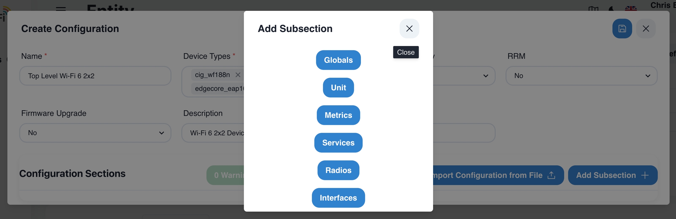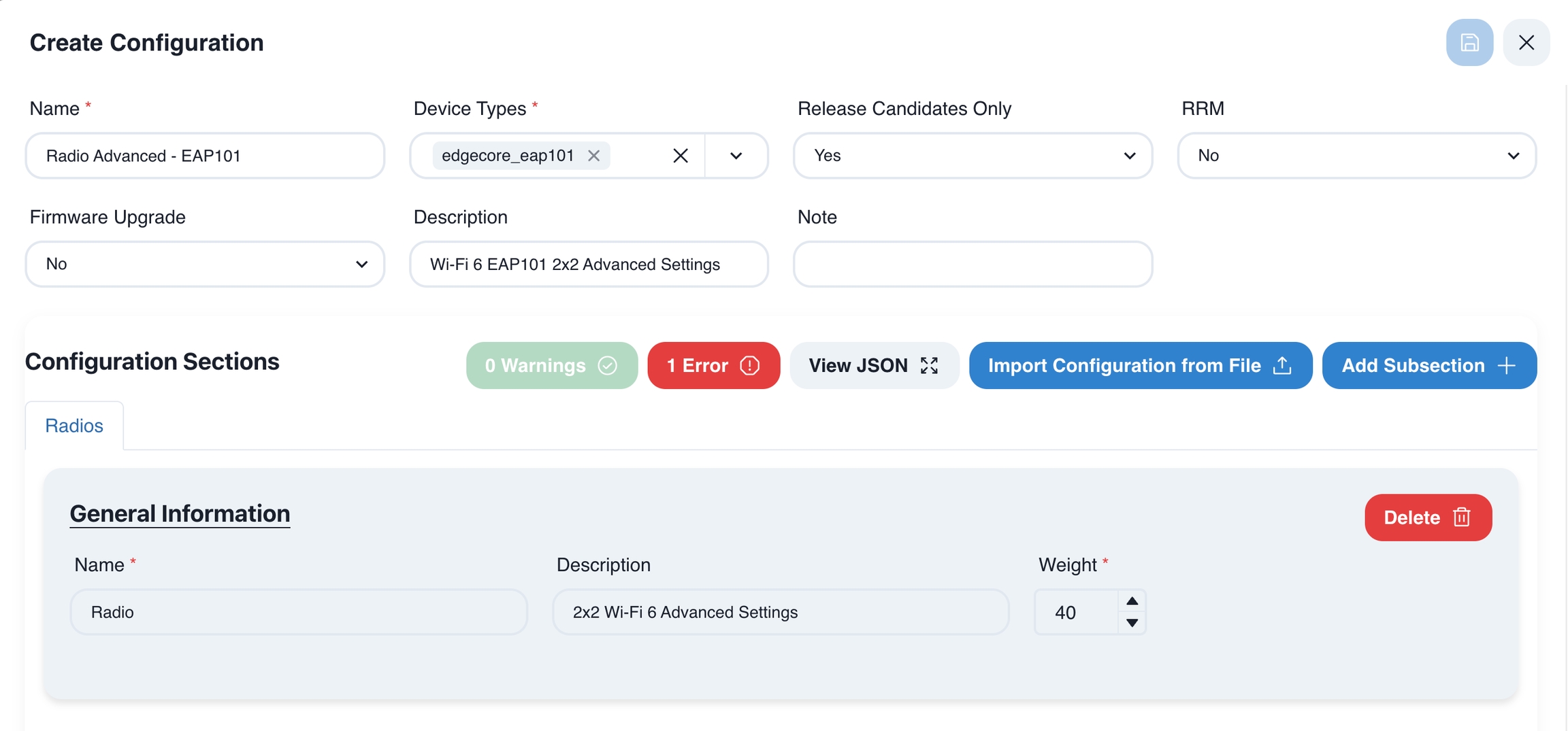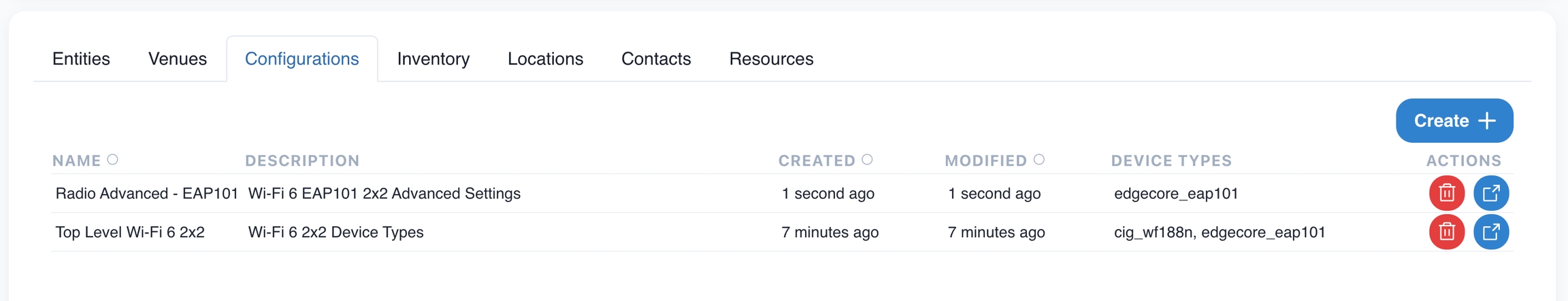 With these settings saved, multiple configuration templates are now shown that will influence radio operating parameters equally yet separately based on device type.