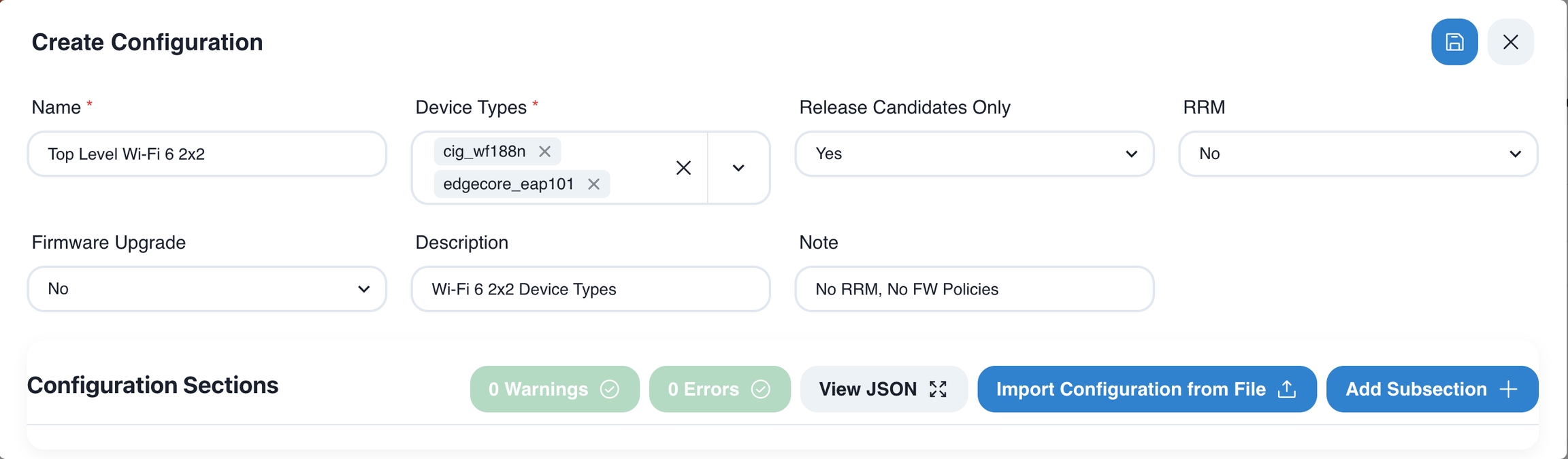 When complete, Save the "Top Level Wi-Fi 6 2x2" configuration for the device types chosen that align to such a radio mode.