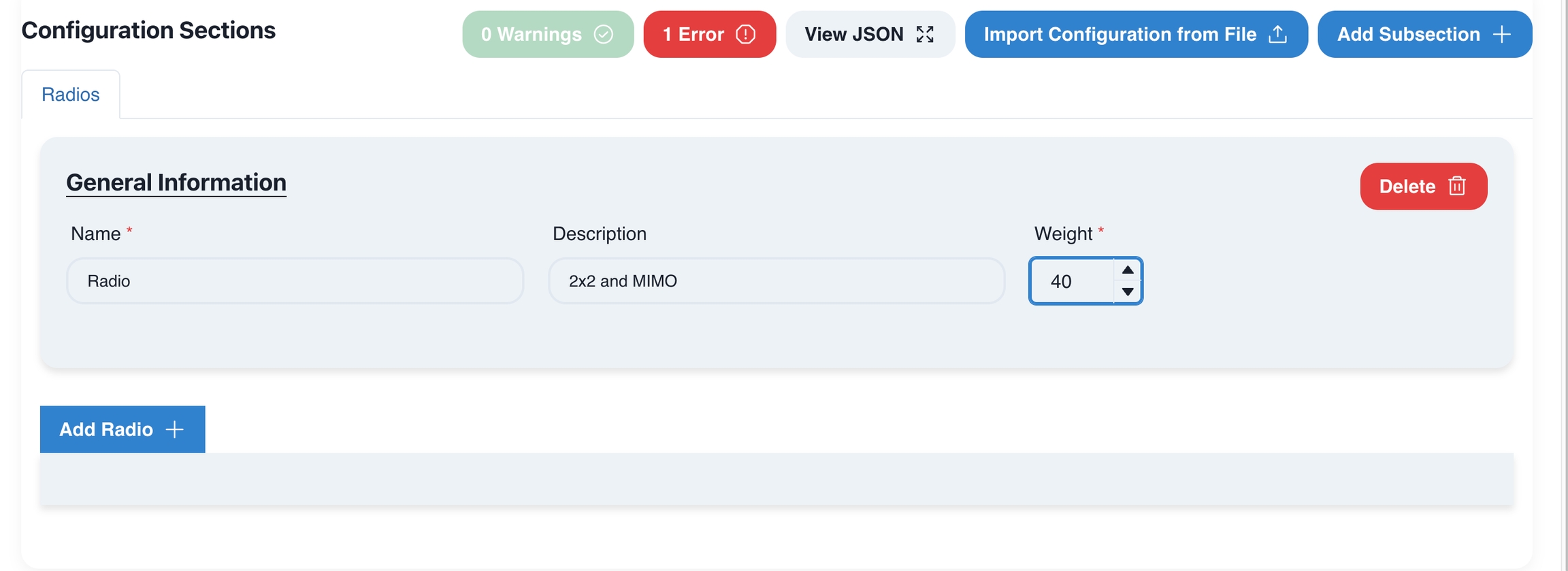 In this example we will choose Radios and define the MIMO and Tx Power.