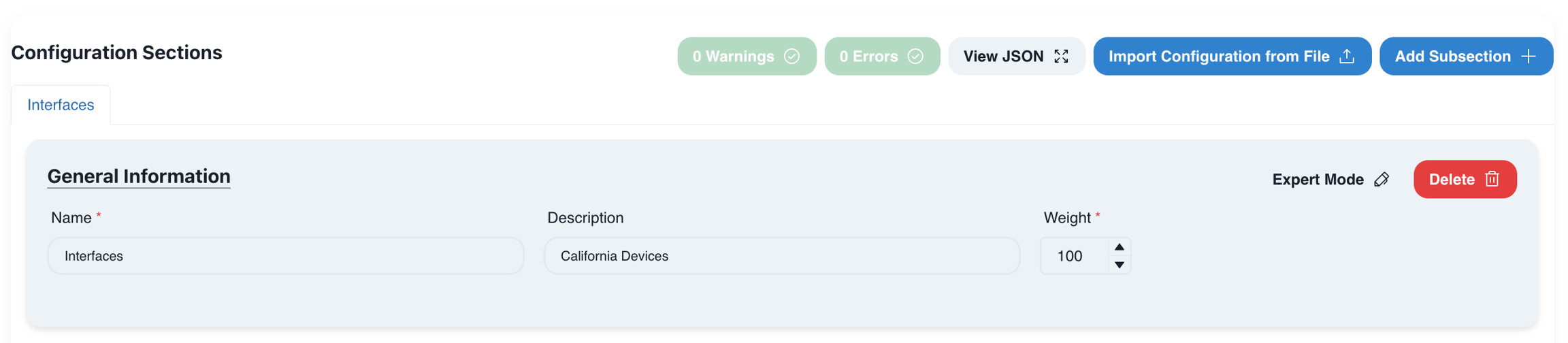 When the above Interfaces configuration section is created, respond to the dialog prompt to define an upstream WAN then select from the available configuration options to suit the local environment.